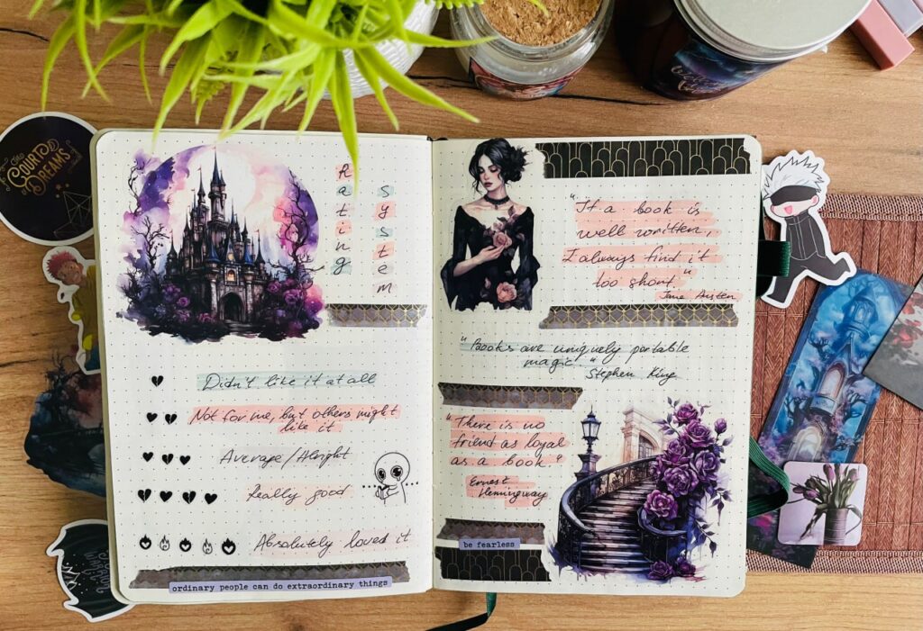 Трохи натхнення (а його завжди можна підживити, зазирнувши у TikTok або Pinterest — там стільки ідей для читацьких щоденників, що очі розбігаються), дрібка магії — і сторінки вже готові до заповнення.