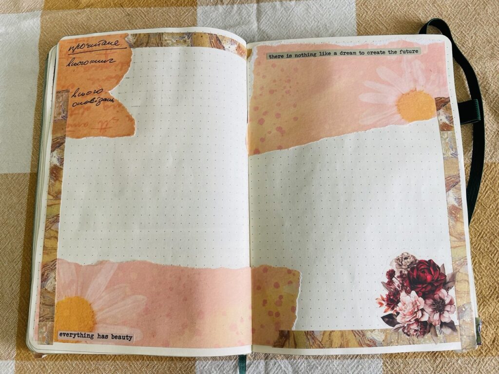 Перше, що потрібно, — це, власне, щоденник. Тут усе індивідуально: комусь зручніше вести великий блокнот, комусь маленький кишеньковий, я ж зупинилась на звичайному крапковому А5. Хоча, хто зна, можливо вам більше пасуватиме електронний формат. Але про це поговоримо іншим разом.
