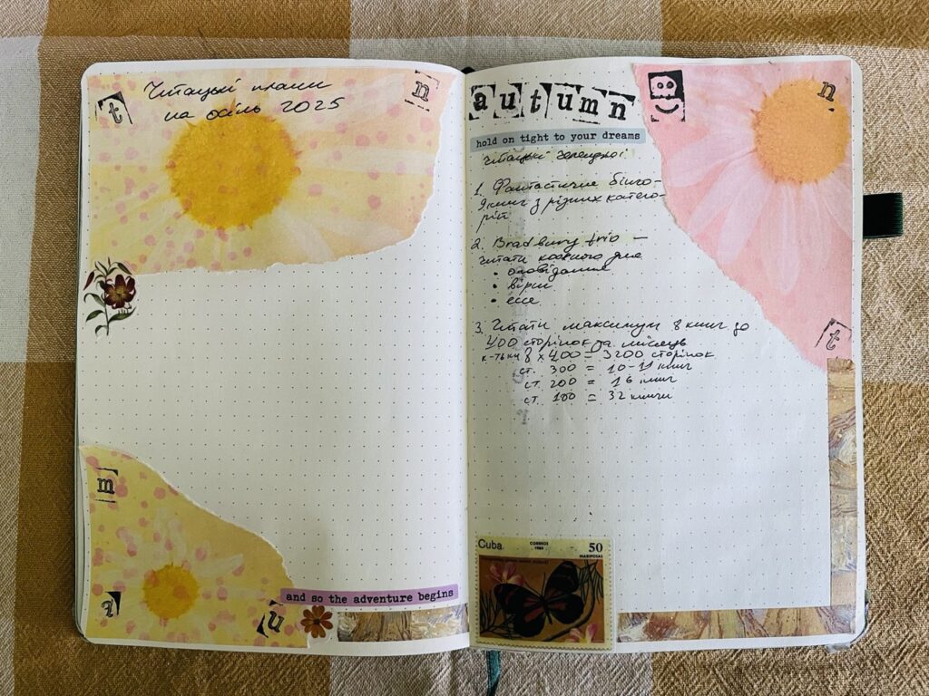 • розворот на осінні плани — тут можна вписувати і книгобажанки, і те, що хочеться прочитати, челенджі й читацькі рефлексії загалом.